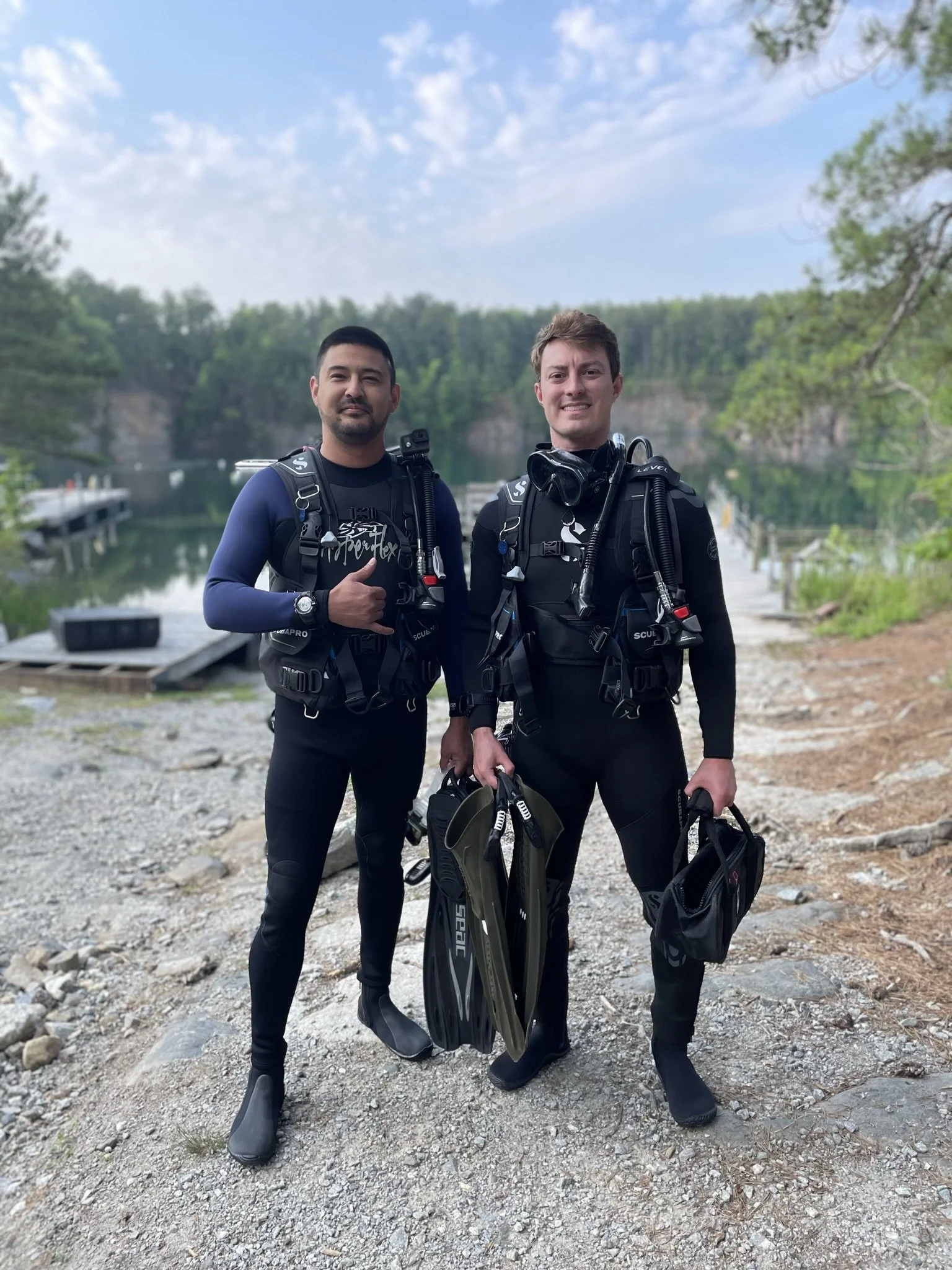 This is a picture from our first time diving together at Lake Phoenix in Rawlings, VA (a familiar site if you were certified locally!).